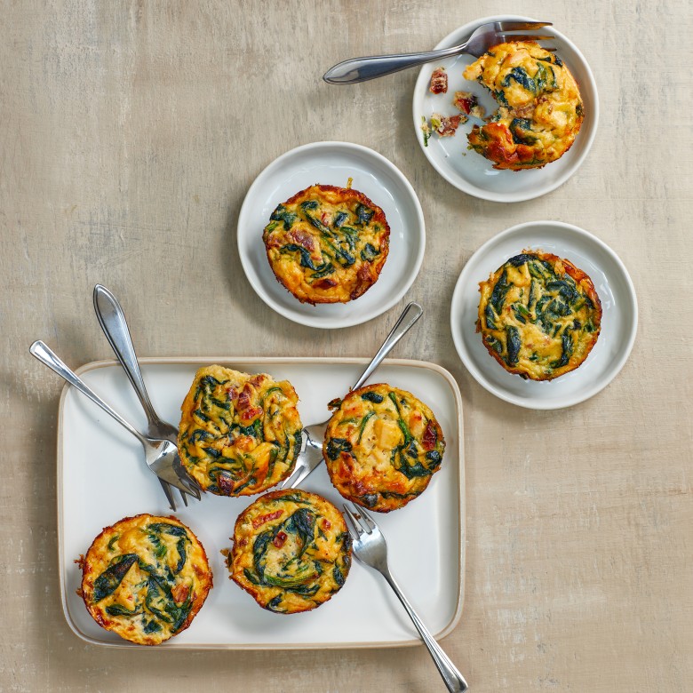 Frittata-muffins met ricotta, spinazie en gerookte kip